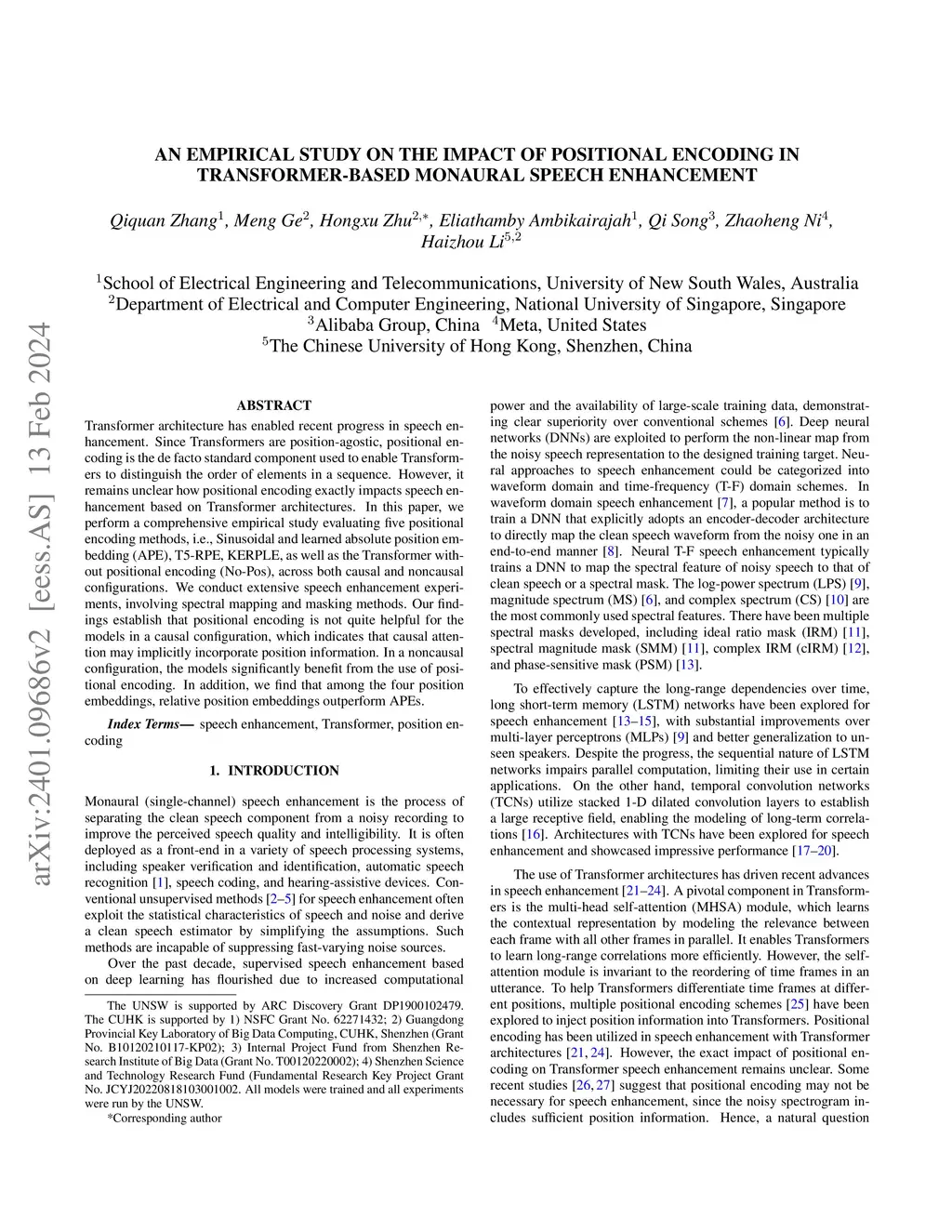Transformer-based Monaural Speech Enhancement