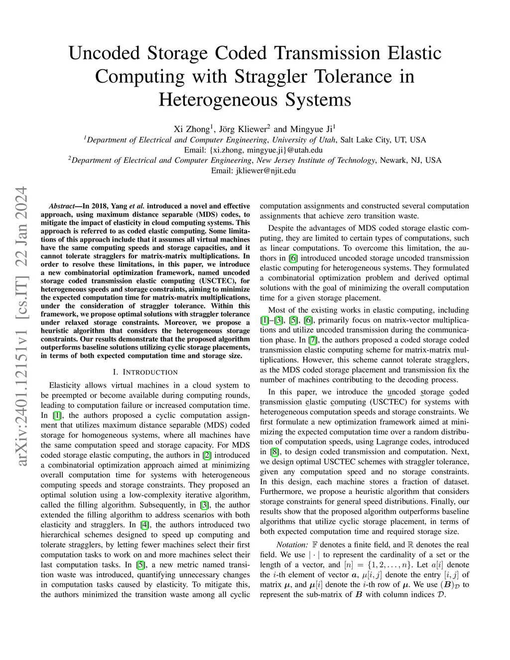 Uncoded Storage Coded Transmission Elastic Computing with Straggler