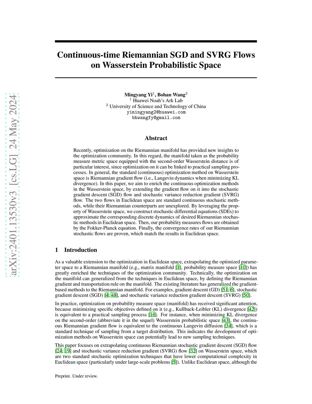 Continuous-time Riemannian SGD and SVRG Flows on Wasserstein Probabilistic Space