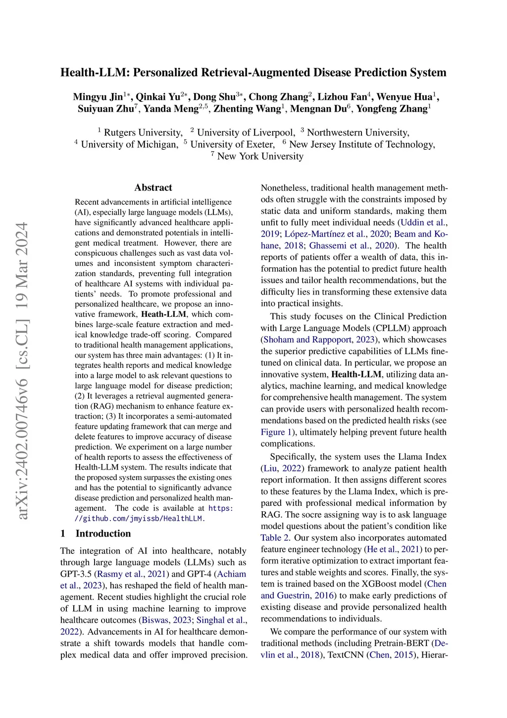 Health-LLM: Personalized Retrieval-Augmented Disease Prediction System