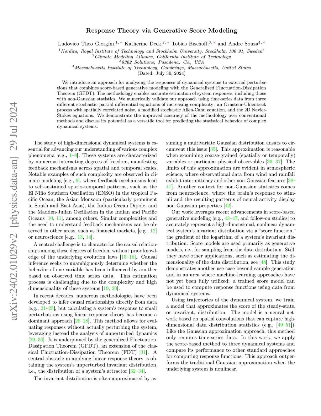 We introduce an approach for analyzing the responses of dynamical systems to external perturbations that combines score-based generative modeling with the Fluctuation-Dissipation Theorem (FDT). The methodology enables accurate estimation of system responses, especially for systems with non-Gaussian statistics, often encountered in dynamical systems far from equilibrium. Such cases often present limitations for conventional approximate methods. We numerically validate our approach using time-series data from a stochastic partial differential equation where the score function is available analytically. Furthermore, we demonstrate the improved accuracy of our methodology over conventional methods and its potential as a versatile tool for understanding complex dynamical systems. Applications span disciplines from climate science and finance to neuroscience.