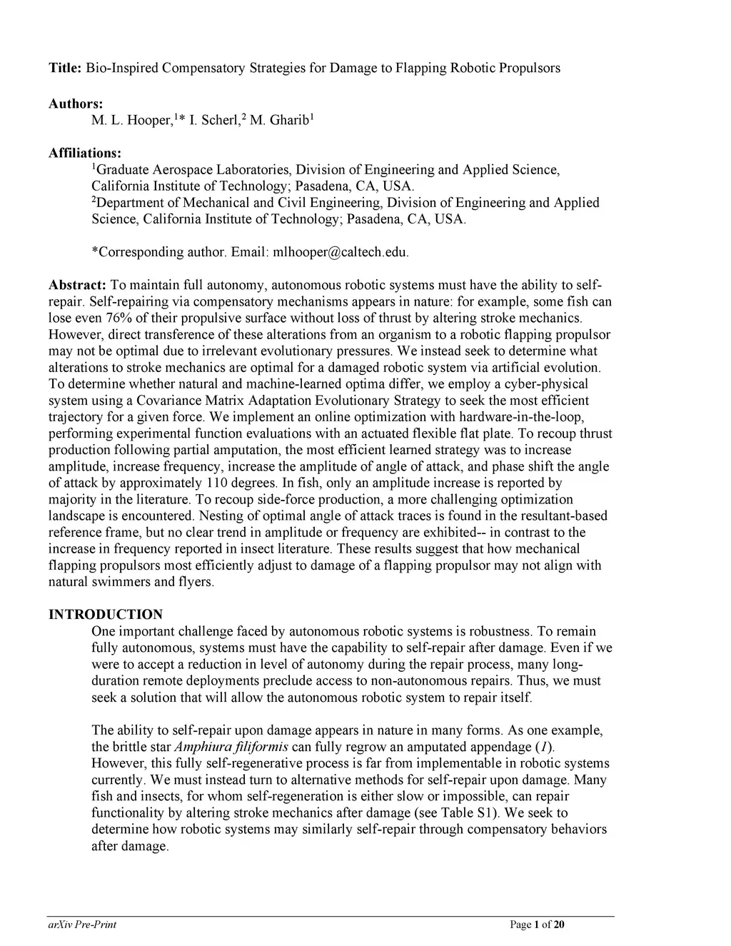 To maintain full autonomy, autonomous robotic systems must have the ability to self-repair. Self-repairing via compensatory mechanisms appears in nature: for example, some fish can lose even 76% of their propulsive surface without loss of thrust by altering stroke mechanics. However, direct transference of these alterations from an organism to a robotic flapping propulsor may not be optimal due to irrelevant evolutionary pressures. We instead seek to determine what alterations to stroke mechanics are optimal for a damaged robotic system via artificial evolution. To determine whether natural and machine-learned optima differ, we employ a cyber-physical system using a Covariance Matrix Adaptation Evolutionary Strategy to seek the most efficient trajectory for a given force. We implement an online optimization with hardware-in-the-loop, performing experimental function evaluations with an actuated flexible flat plate. To recoup thrust production following partial amputation, the most efficient learned strategy was to increase amplitude, increase frequency, increase the amplitude of angle of attack, and phase shift the angle of attack by approximately 110 degrees. In fish, only an amplitude increase is reported by majority in the literature. To recoup side-force production, a more challenging optimization landscape is encountered. Nesting of optimal angle of attack traces is found in the resultant-based reference frame, but no clear trend in amplitude or frequency are exhibited -- in contrast to the increase in frequency reported in insect literature. These results suggest that how mechanical flapping propulsors most efficiently adjust to damage of a flapping propulsor may not align with natural swimmers and flyers.