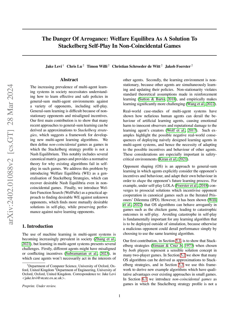 The increasing prevalence of multi-agent learning systems in society necessitates understanding how to learn effective and safe policies in general-sum multi-agent environments against a variety of opponents, including self-play. General-sum learning is difficult because of non-stationary opponents and misaligned incentives. Our first main contribution is to show that many recent approaches to general-sum learning can be derived as approximations to Stackelberg strategies, which suggests a framework for developing new multi-agent learning algorithms. We then define non-coincidental games as games in which the Stackelberg strategy profile is not a Nash Equilibrium. This notably includes several canonical matrix games and provides a normative theory for why existing algorithms fail in self-play in such games. We address this problem by introducing Welfare Equilibria (WE) as a generalisation of Stackelberg Strategies, which can recover desirable Nash Equilibria even in non-coincidental games. Finally, we introduce Welfare Function Search (WelFuSe) as a practical approach to finding desirable WE against unknown opponents, which finds more mutually desirable solutions in self-play, while preserving performance against naive learning opponents.