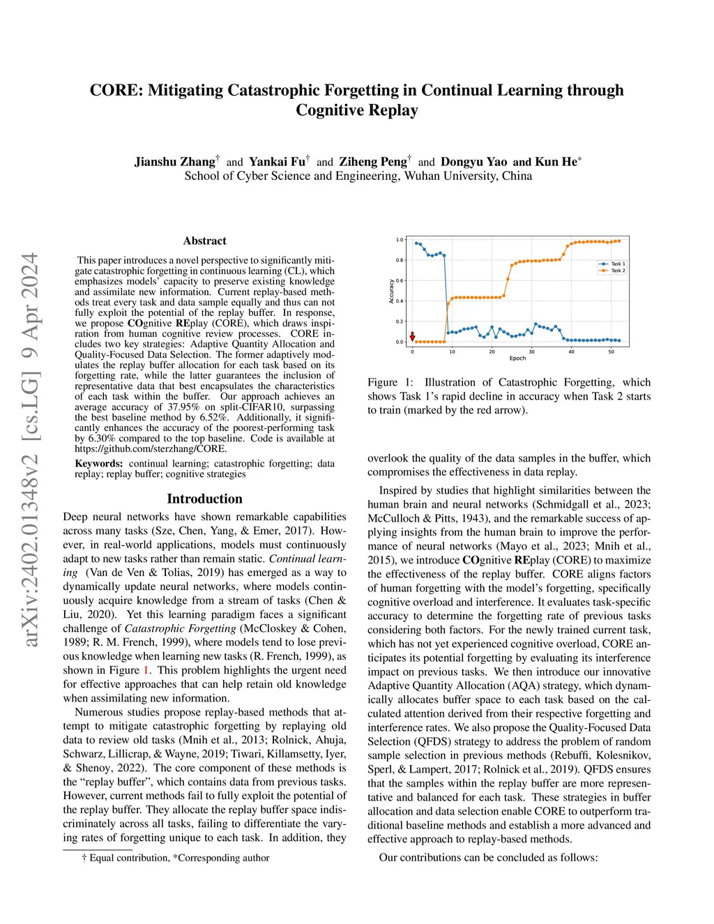 CORE: Mitigating Catastrophic Forgetting in Continual Learning through