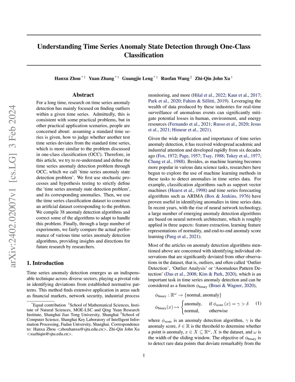Understanding Time Series Anomaly State Detection through One-Class