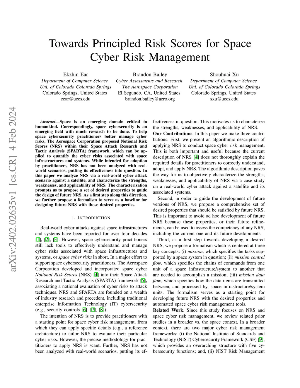 Towards Principled Risk Scores for Space Cyber Risk Management