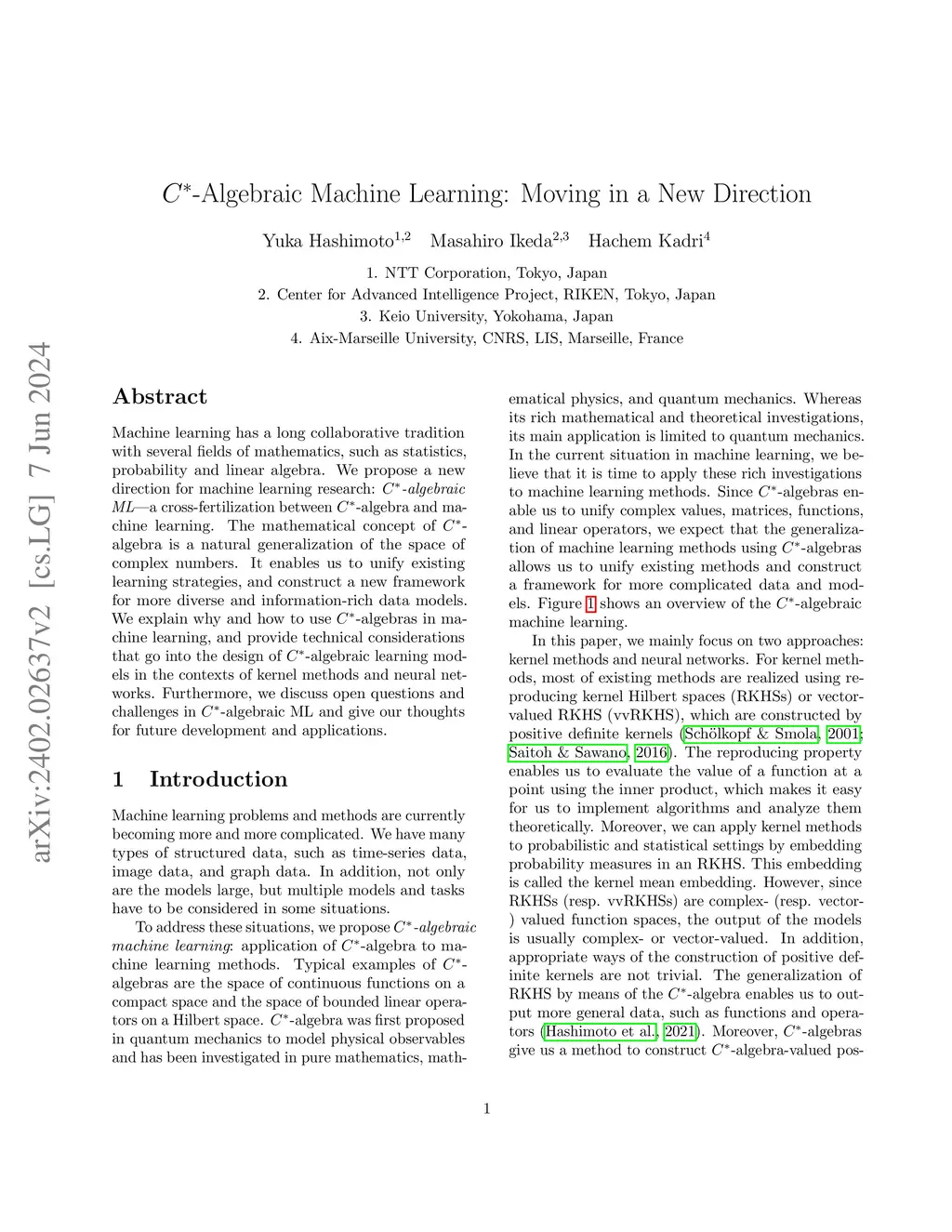 Machine learning has a long collaborative tradition with several fields of mathematics, such as statistics, probability and linear algebra. We propose a new direction for machine learning research: -algebraic ML a cross-fertilization between -algebra and machine learning. The mathematical concept of -algebra is a natural generalization of the space of complex numbers. It enables us to unify existing learning strategies, and construct a new framework for more diverse and information-rich data models. We explain why and how to use -algebras in machine learning, and provide technical considerations that go into the design of -algebraic learning models in the contexts of kernel methods and neural networks. Furthermore, we discuss open questions and challenges in -algebraic ML and give our thoughts for future development and applications.