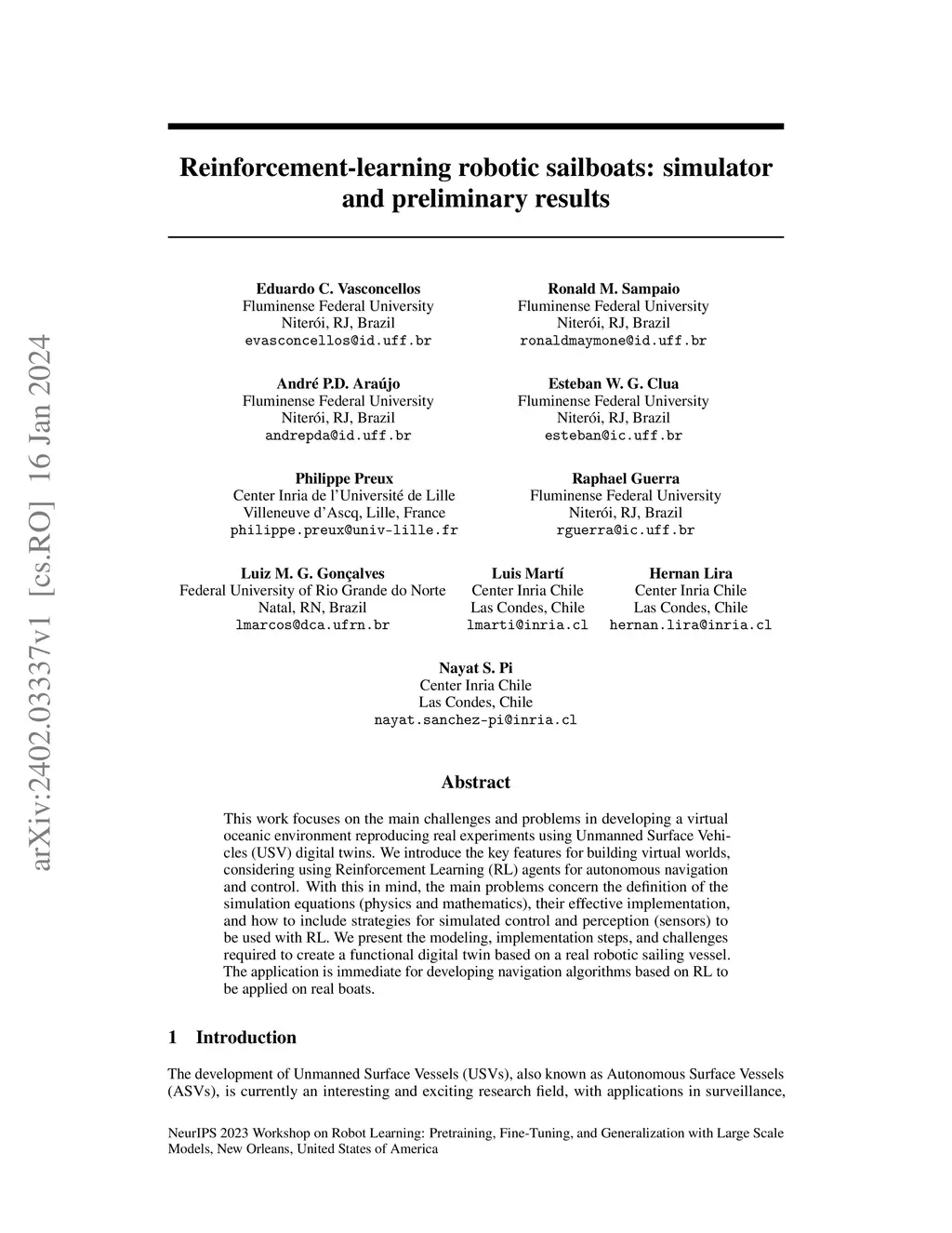 Reinforcement-learning robotic sailboats: simulator and preliminary