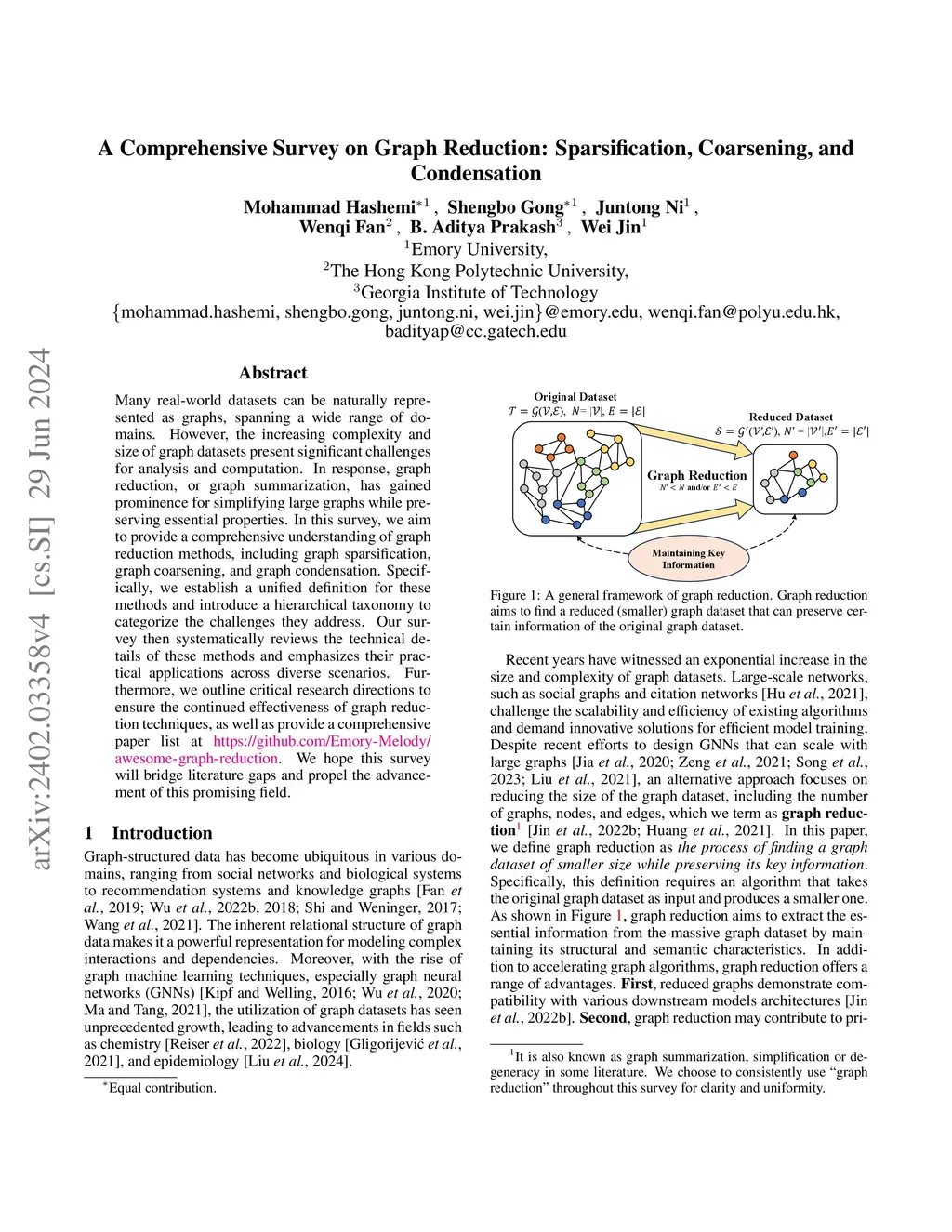 A Comprehensive Survey on Graph Reduction: Sparsification, Coarsening,