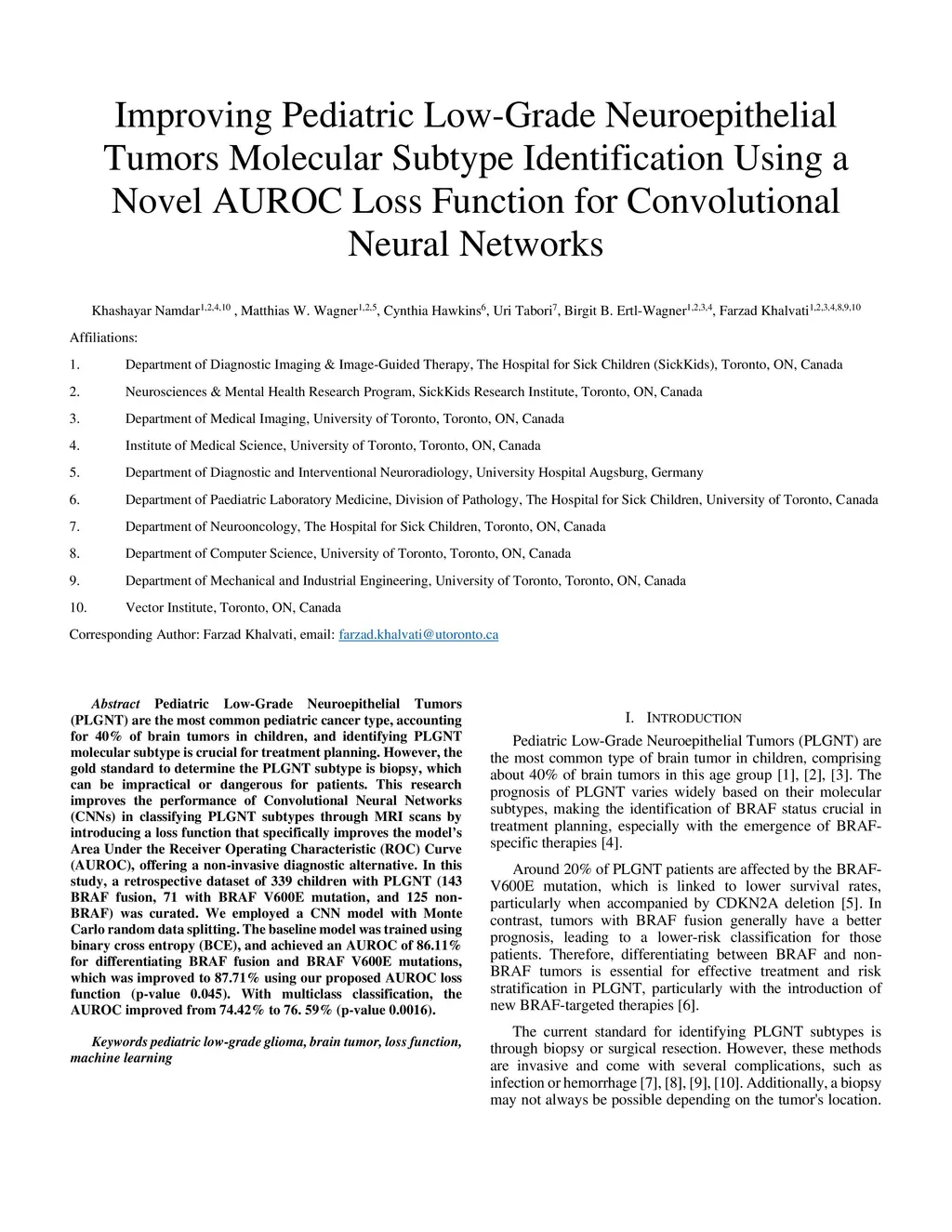 Pediatric Low-Grade Neuroepithelial Tumors (PLGNT) are the most common pediatric cancer type, accounting for 40% of brain tumors in children, and identifying PLGNT molecular subtype is crucial for treatment planning. However, the gold standard to determine the PLGNT subtype is biopsy, which can be impractical or dangerous for patients. This research improves the performance of Convolutional Neural Networks (CNNs) in classifying PLGNT subtypes through MRI scans by introducing a loss function that specifically improves the model's Area Under the Receiver Operating Characteristic (ROC) Curve (AUROC), offering a non-invasive diagnostic alternative. In this study, a retrospective dataset of 339 children with PLGNT (143 BRAF fusion, 71 with BRAF V600E mutation, and 125 non-BRAF) was curated. We employed a CNN model with Monte Carlo random data splitting. The baseline model was trained using binary cross entropy (BCE), and achieved an AUROC of 86.11% for differentiating BRAF fusion and BRAF V600E mutations, which was improved to 87.71% using our proposed AUROC loss function (p-value 0.045). With multiclass classification, the AUROC improved from 74.42% to 76. 59% (p-value 0.0016).