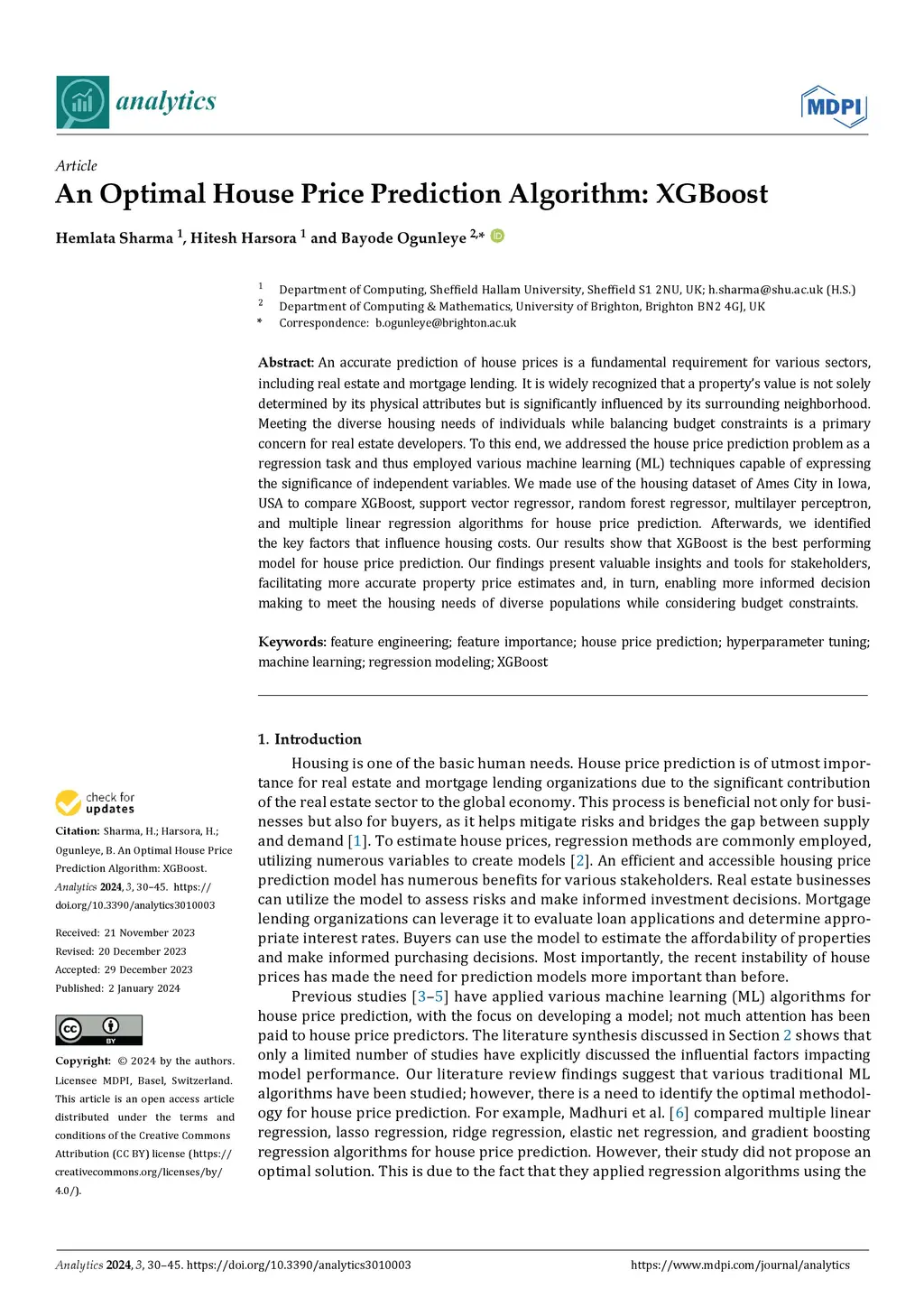 An accurate prediction of house prices is a fundamental requirement for various sectors including real estate and mortgage lending. It is widely recognized that a property value is not solely determined by its physical attributes but is significantly influenced by its surrounding neighbourhood. Meeting the diverse housing needs of individuals while balancing budget constraints is a primary concern for real estate developers. To this end, we addressed the house price prediction problem as a regression task and thus employed various machine learning techniques capable of expressing the significance of independent variables. We made use of the housing dataset of Ames City in Iowa, USA to compare support vector regressor, random forest regressor, XGBoost, multilayer perceptron and multiple linear regression algorithms for house price prediction. Afterwards, we identified the key factors that influence housing costs. Our results show that XGBoost is the best performing model for house price prediction.