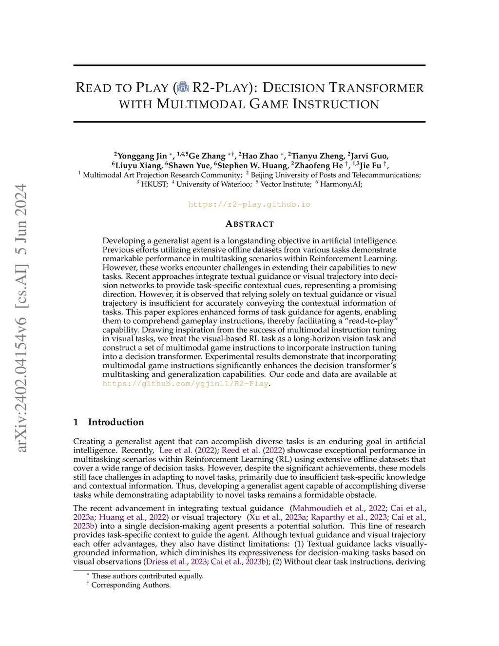 Read to Play (R2-Play): Decision Transformer with Multimodal Game