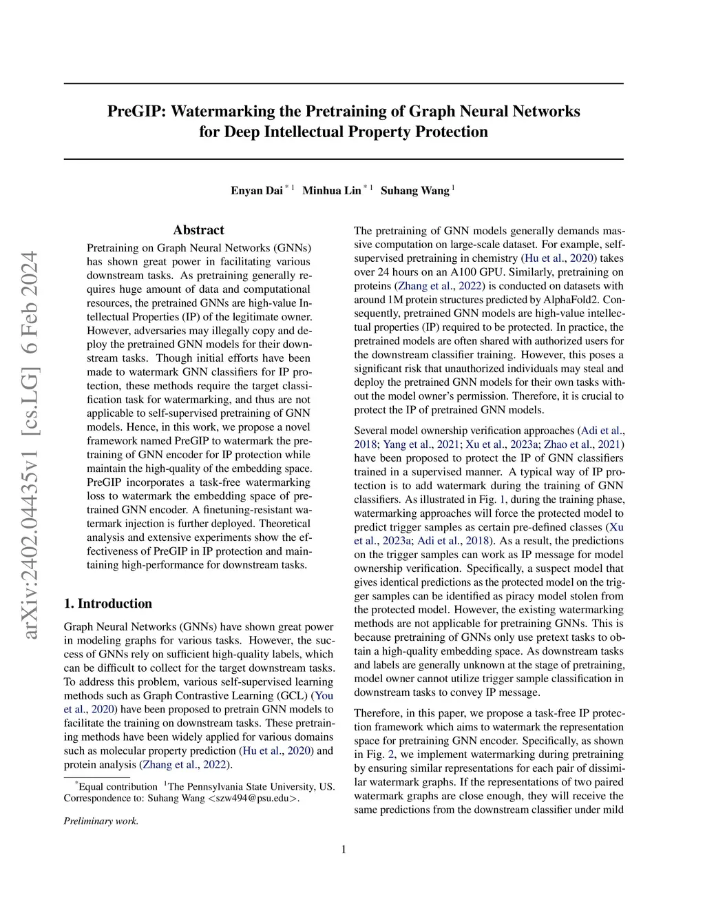 PreGIP: Watermarking the Pretraining of Graph Neural Networks for Deep Intellectual Property Protection