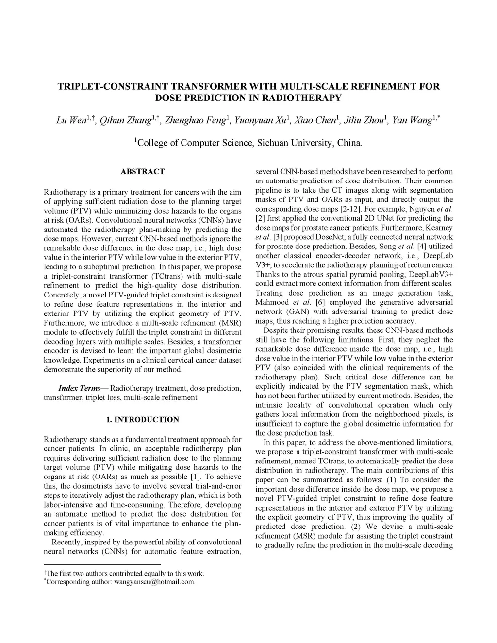 Triplet-constraint Transformer with Multi-scale Refinement for Dose