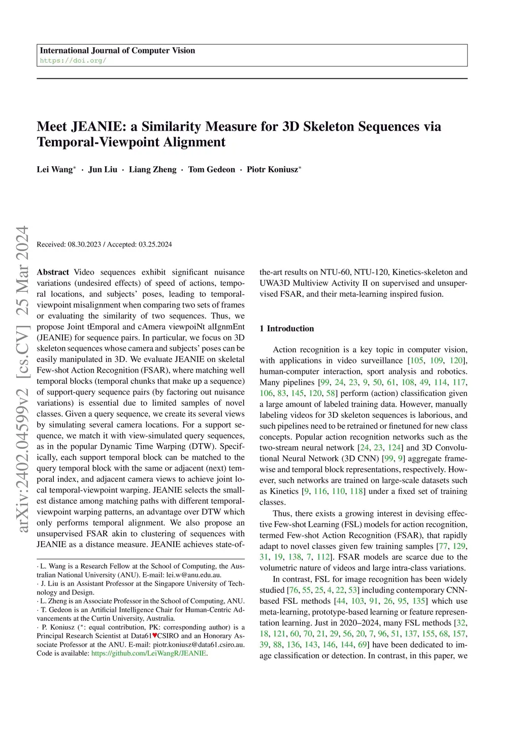 Meet JEANIE: a Similarity Measure for 3D Skeleton Sequences via