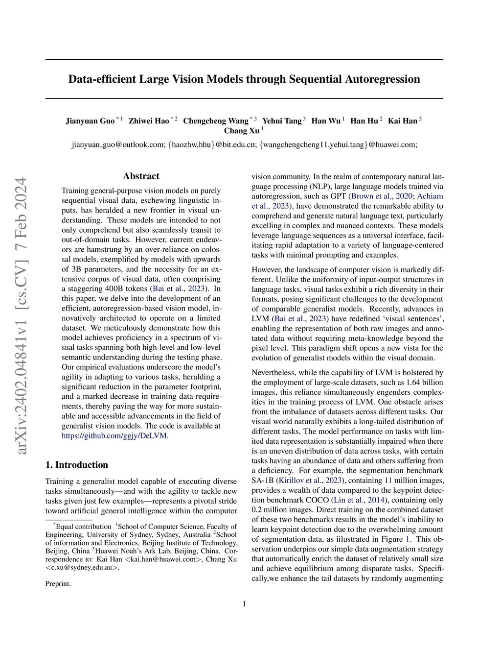 Data-efficient Large Vision Models through Sequential Autoregression
