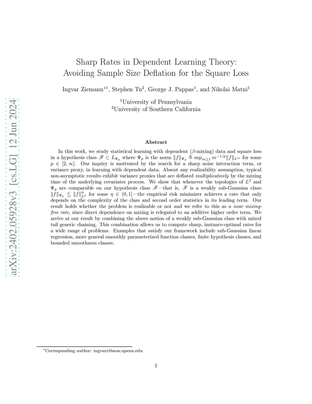 Sharp Rates in Dependent Learning Theory: Avoiding Sample Size Deflation for the Square Loss