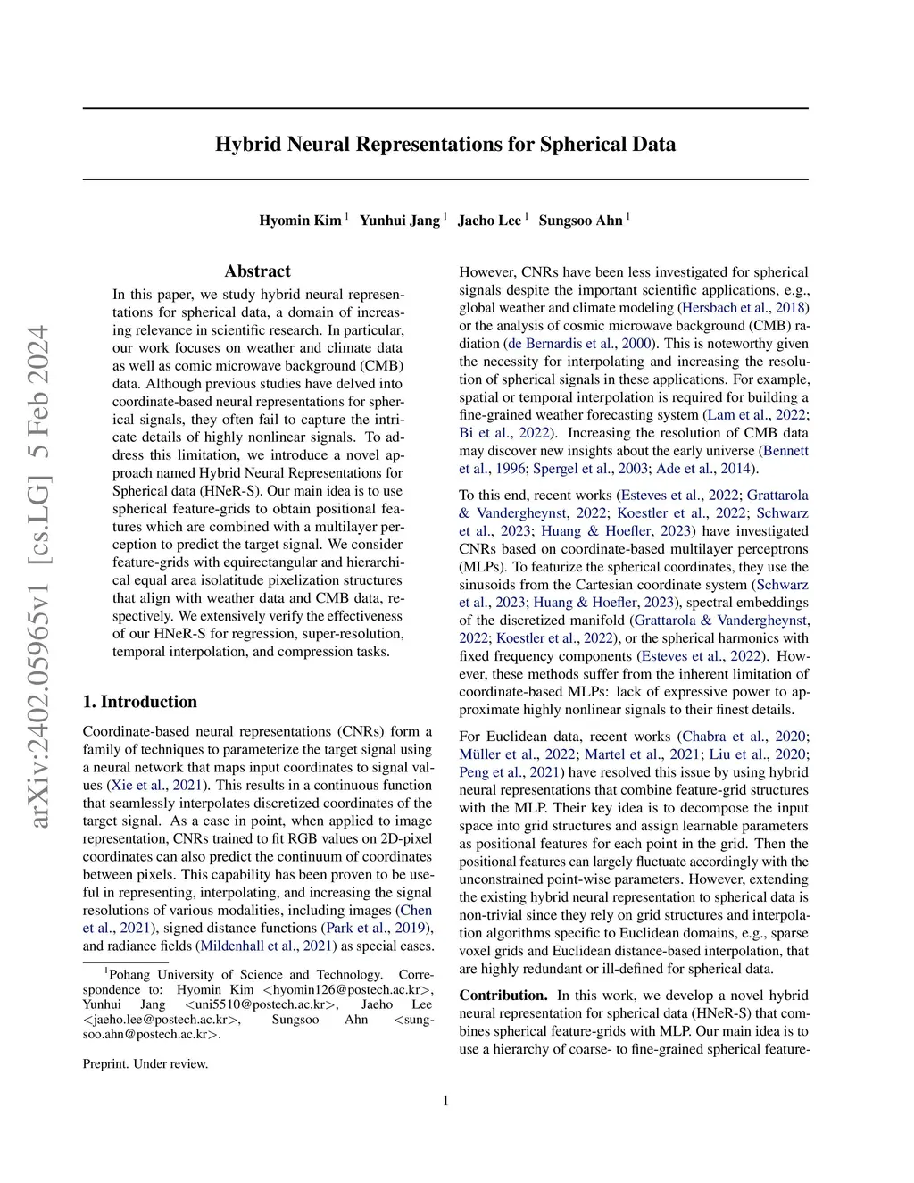 Hybrid Neural Representations for Spherical Data