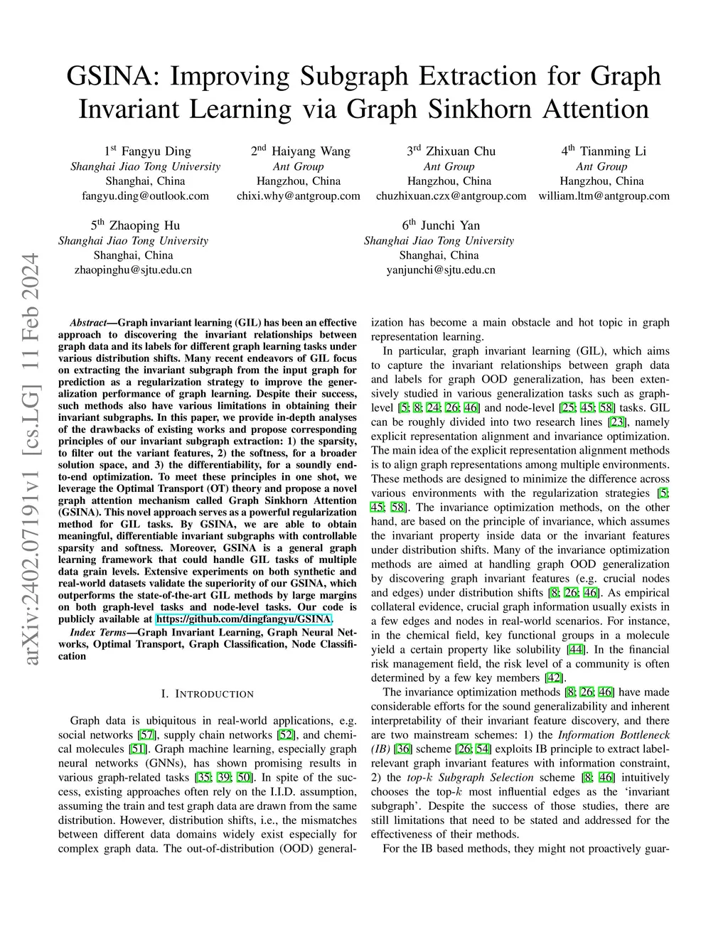 GSINA: Improving Subgraph Extraction for Graph Invariant Learning via Graph Sinkhorn Attention