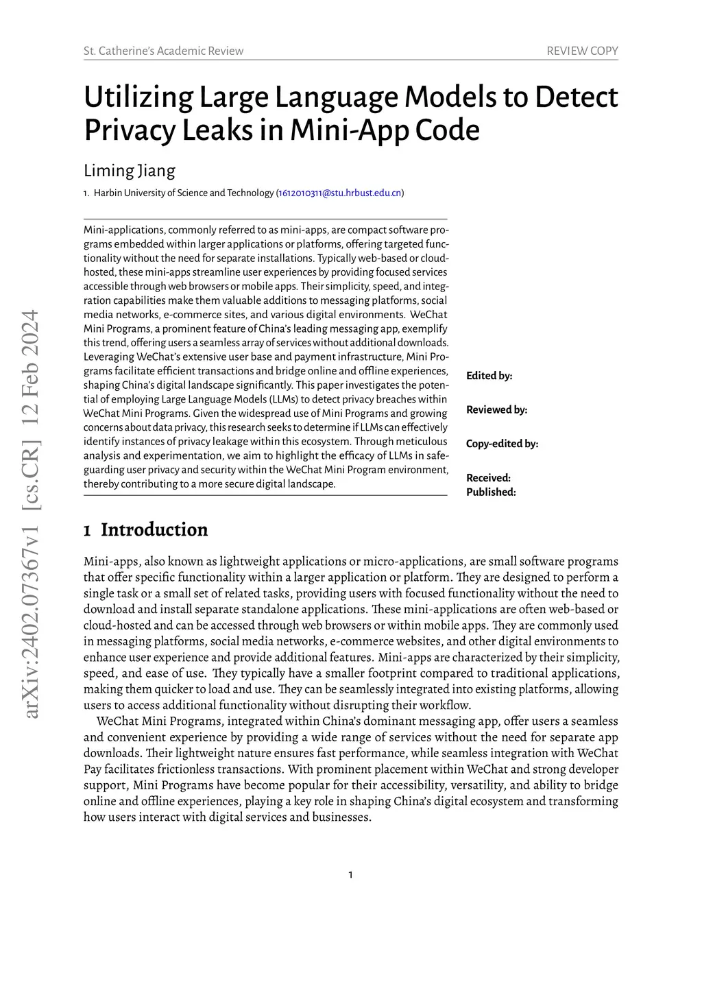 Mini-applications, commonly referred to as mini-apps, are compact software programs embedded within larger applications or platforms, offering targeted functionality without the need for separate installations. Typically web-based or cloud-hosted, these mini-apps streamline user experiences by providing focused services accessible through web browsers or mobile apps. Their simplicity, speed, and integration capabilities make them valuable additions to messaging platforms, social media networks, e-commerce sites, and various digital environments. WeChat Mini Programs, a prominent feature of China's leading messaging app, exemplify this trend, offering users a seamless array of services without additional downloads. Leveraging WeChat's extensive user base and payment infrastructure, Mini Programs facilitate efficient transactions and bridge online and offline experiences, shaping China's digital landscape significantly. This paper investigates the potential of employing Large Language Models (LLMs) to detect privacy breaches within WeChat Mini Programs. Given the widespread use of Mini Programs and growing concerns about data privacy, this research seeks to determine if LLMs can effectively identify instances of privacy leakage within this ecosystem. Through meticulous analysis and experimentation, we aim to highlight the efficacy of LLMs in safeguarding user privacy and security within the WeChat Mini Program environment, thereby contributing to a more secure digital landscape.