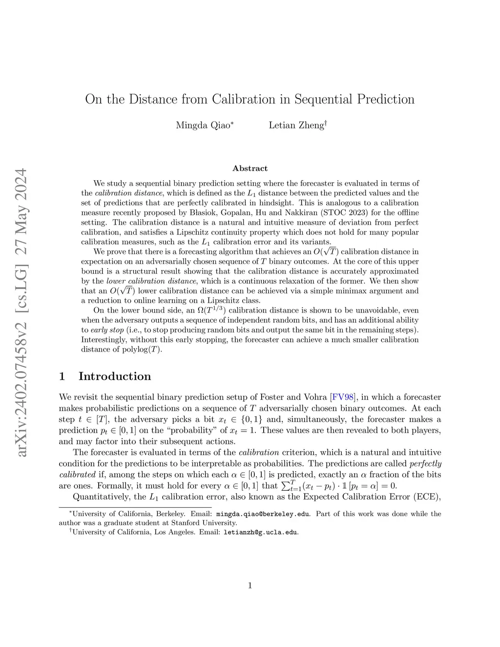 On the Distance from Calibration in Sequential Prediction