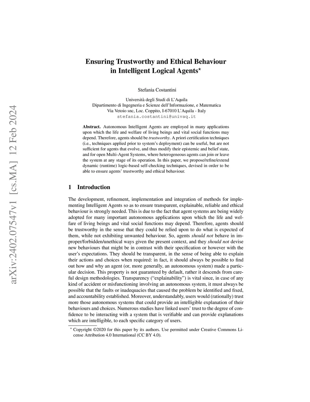 Ensuring trustworthy and ethical behaviour in intelligent logical agents