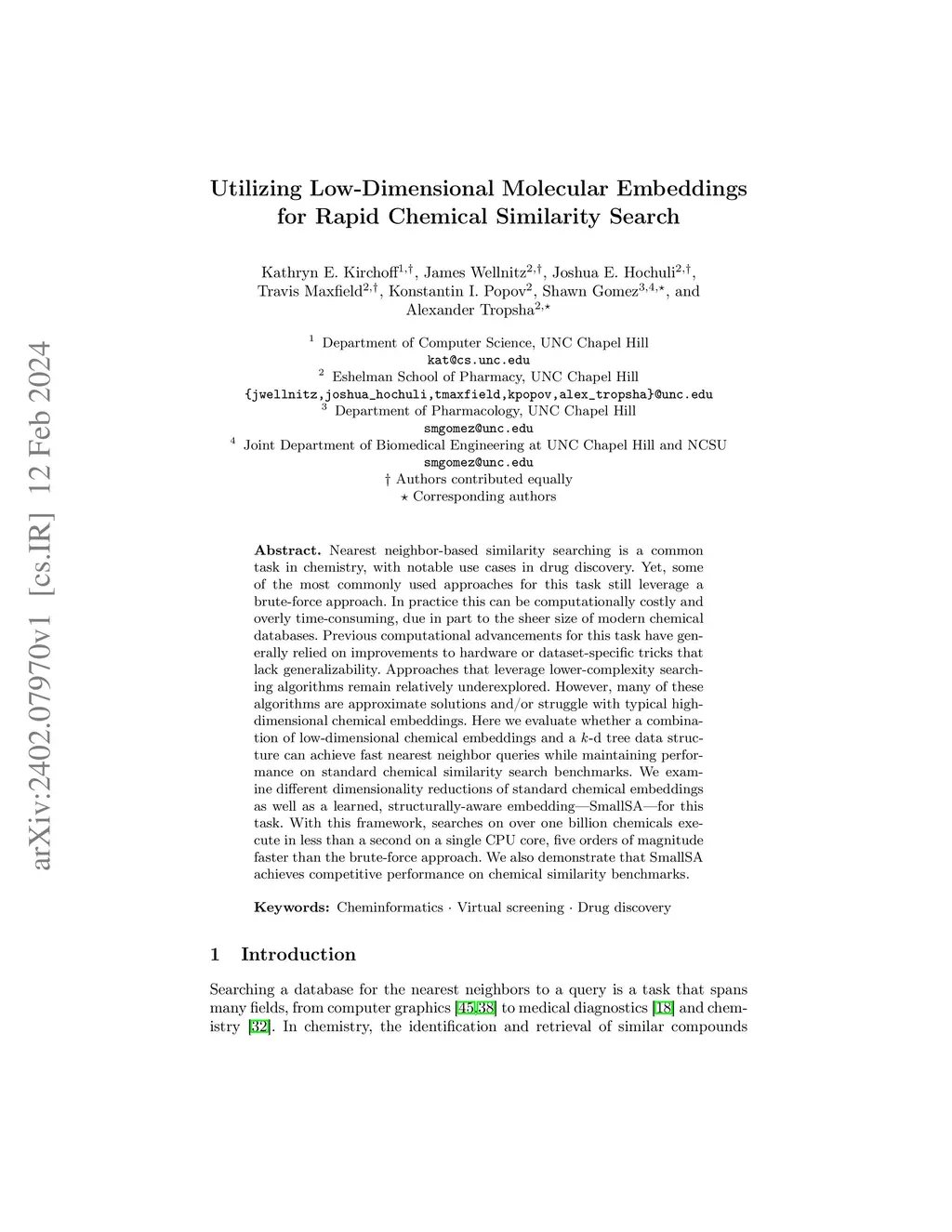 Utilizing Low-Dimensional Molecular Embeddings for Rapid Chemical