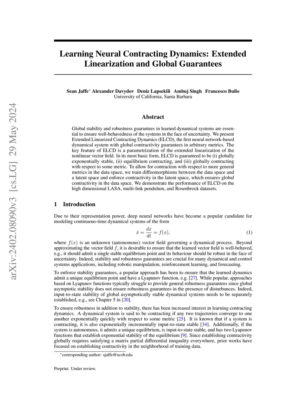 Learning Neural Contracting Dynamics: Extended Linearization and Global Guarantees
