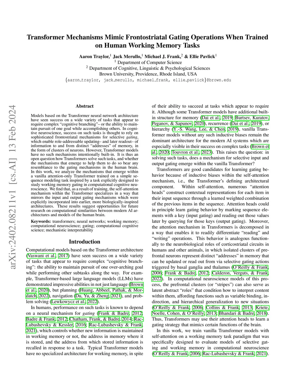 Transformer Mechanisms Mimic Frontostriatal Gating Operations When
