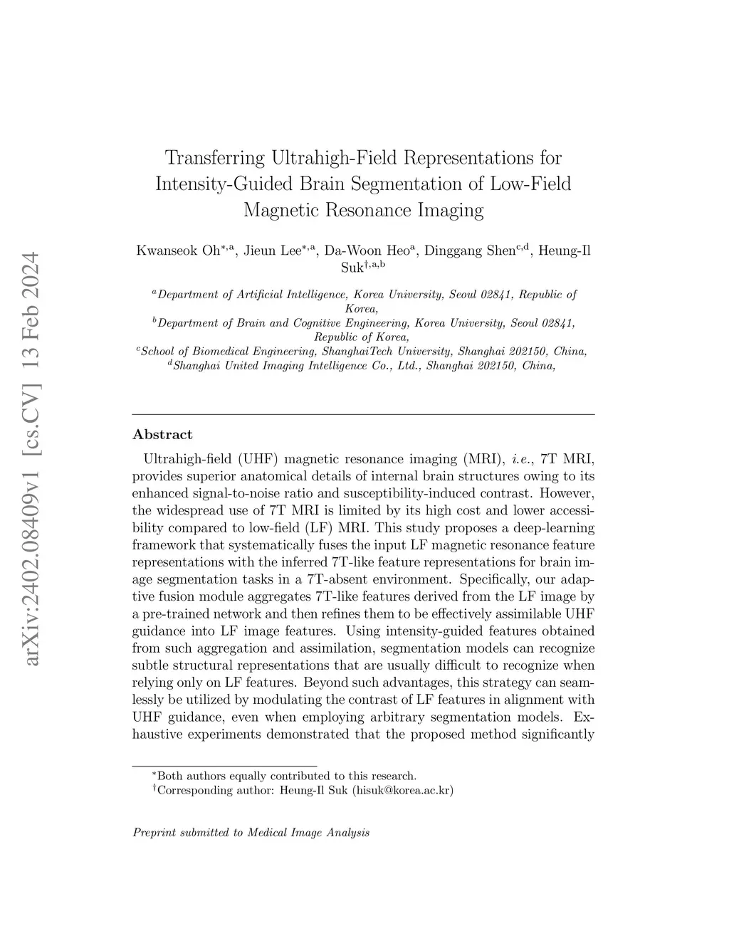 Transferring Ultrahigh-Field Representations for Intensity-Guided Brain