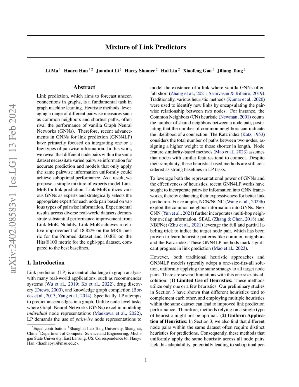 Link prediction, which aims to forecast unseen connections in graphs, is a fundamental task in graph machine learning. Heuristic methods, leveraging a range of different pairwise measures such as common neighbors and shortest paths, often rival the performance of vanilla Graph Neural Networks (GNNs). Therefore, recent advancements in GNNs for link prediction (GNN4LP) have primarily focused on integrating one or a few types of pairwise information. In this work, we reveal that different node pairs within the same dataset necessitate varied pairwise information for accurate prediction and models that only apply the same pairwise information uniformly could achieve suboptimal performance. As a result, we propose a simple mixture of experts model Link-MoE for link prediction. Link-MoE utilizes various GNNs as experts and strategically selects the appropriate expert for each node pair based on various types of pairwise information. Experimental results across diverse real-world datasets demonstrate substantial performance improvement from Link-MoE. Notably, Link-MoE achieves a relative improvement of 18.71\% on the MRR metric for the Pubmed dataset and 9.59\% on the Hits@100 metric for the ogbl-ppa dataset, compared to the best baselines.