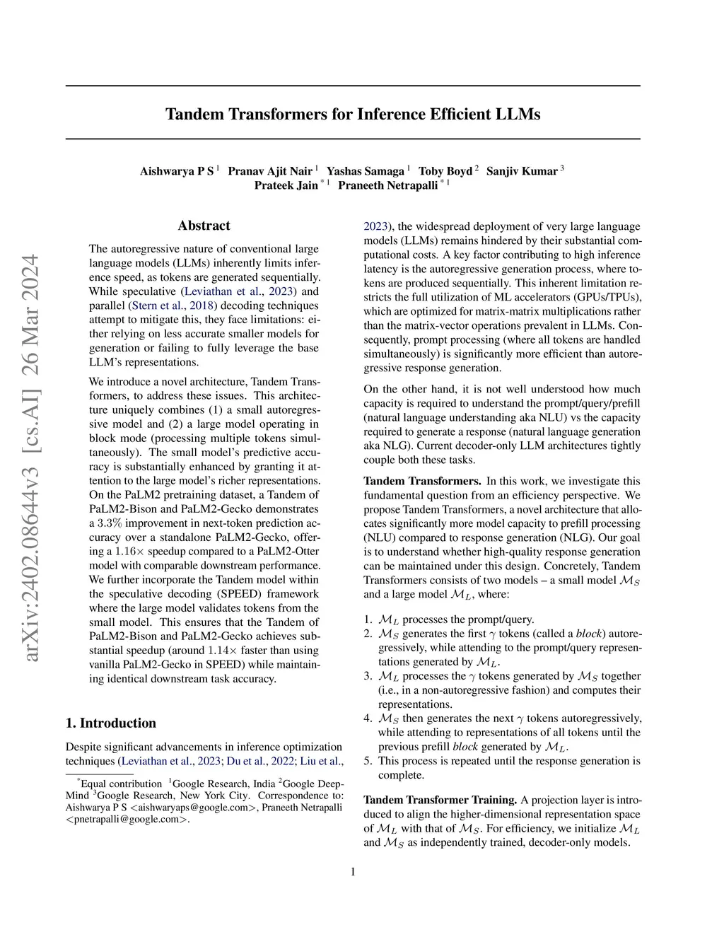 Tandem Transformers for Inference Efficient LLMs