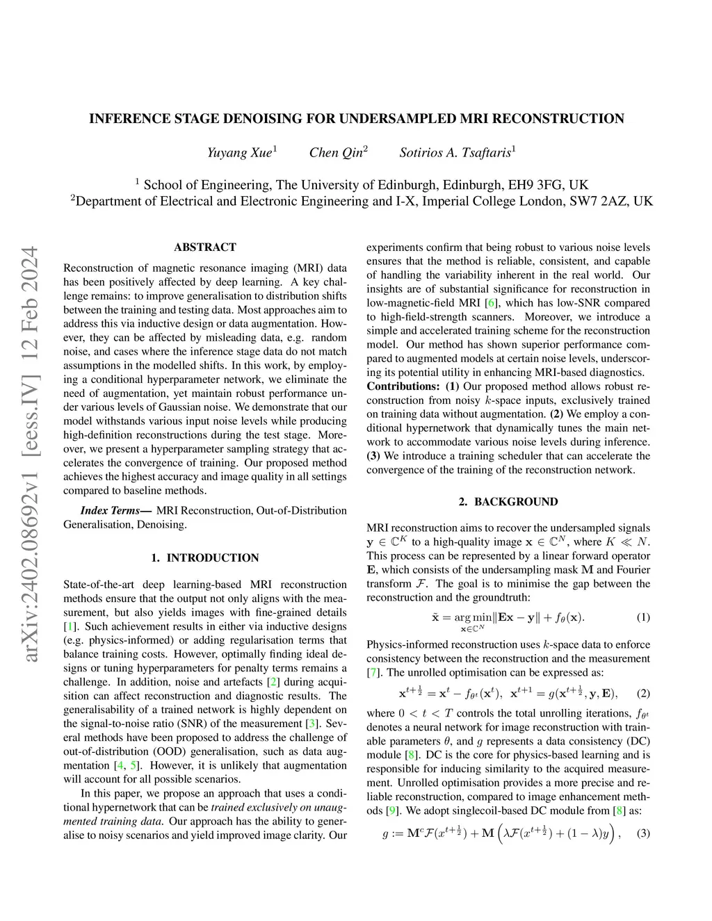 Inference Stage Denoising for Undersampled MRI Reconstruction