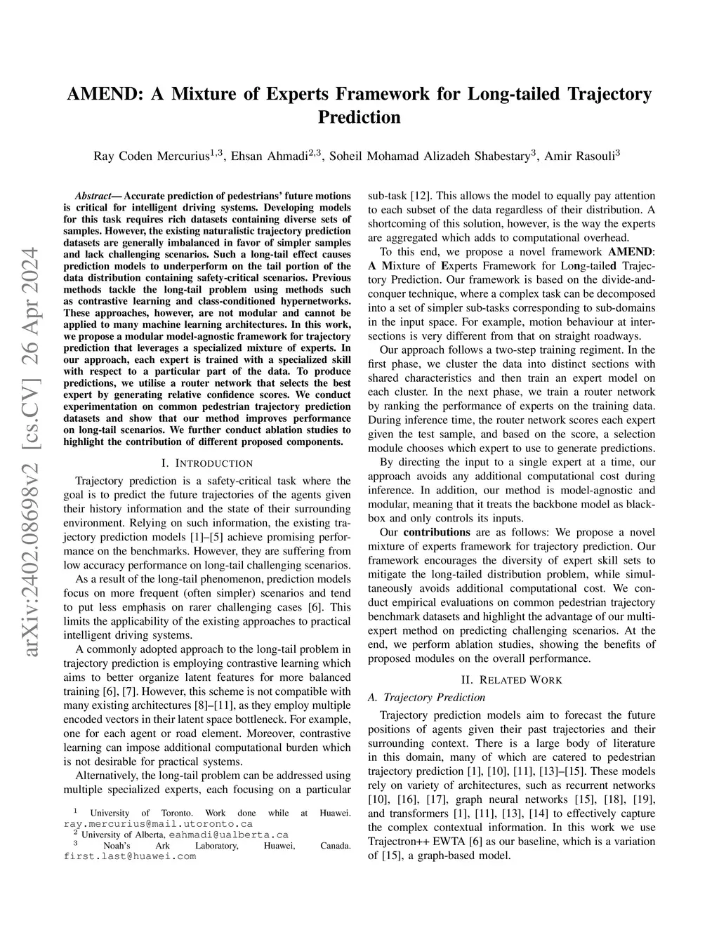 AMEND: A Mixture of Experts Framework for Long-tailed Trajectory