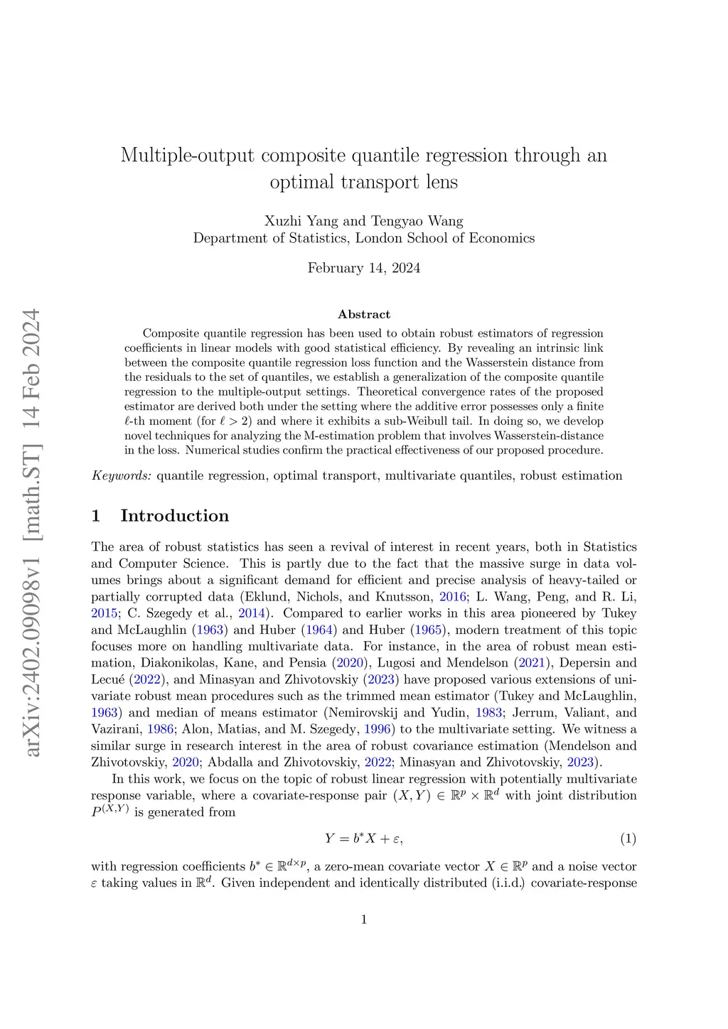 Composite quantile regression has been used to obtain robust estimators of regression coefficients in linear models with good statistical efficiency. By revealing an intrinsic link between the composite quantile regression loss function and the Wasserstein distance from the residuals to the set of quantiles, we establish a generalization of the composite quantile regression to the multiple-output settings. Theoretical convergence rates of the proposed estimator are derived both under the setting where the additive error possesses only a finite -th moment (for ) and where it exhibits a sub-Weibull tail. In doing so, we develop novel techniques for analyzing the M-estimation problem that involves Wasserstein-distance in the loss. Numerical studies confirm the practical effectiveness of our proposed procedure.
