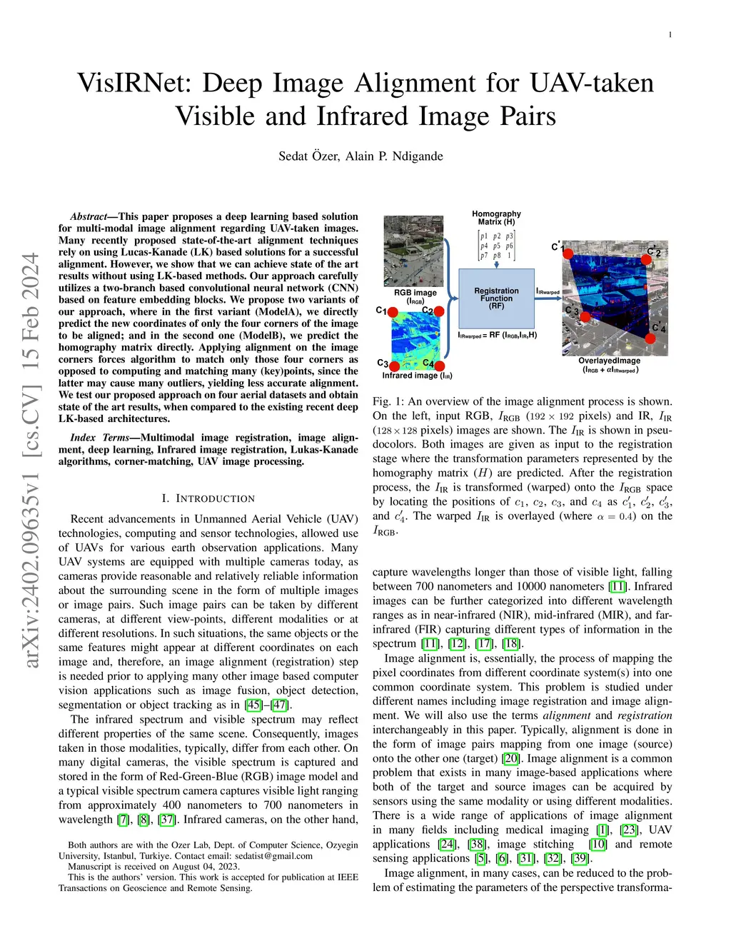 VisIRNet: Deep Image Alignment for UAV-taken Visible and Infrared Image