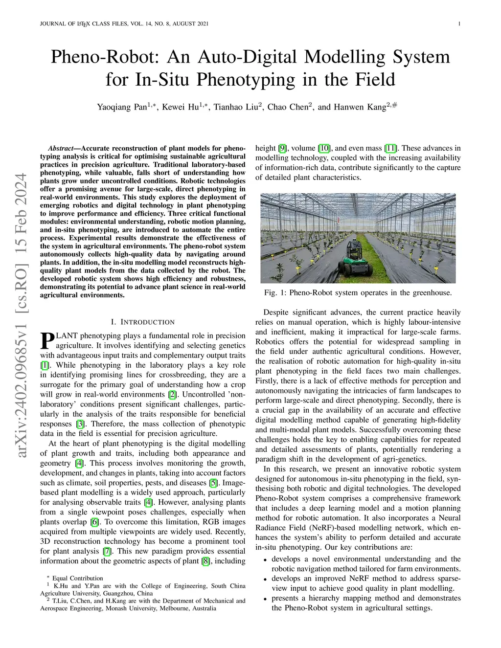Pheno-Robot: An Auto-Digital Modelling System for In-Situ Phenotyping in