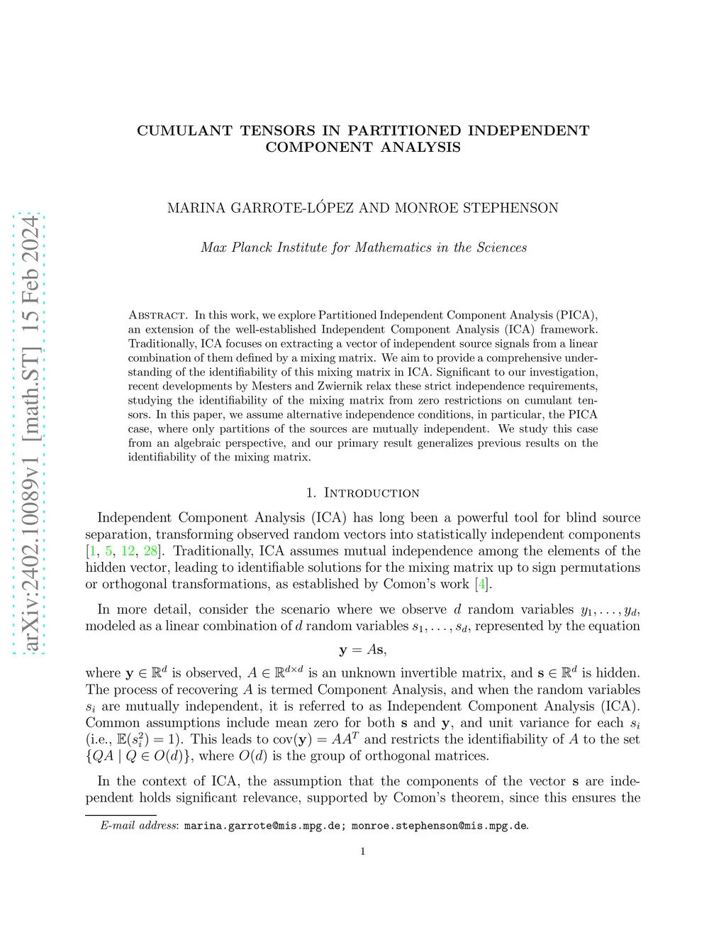 Cumulant Tensors in Partitioned Independent Component Analysis