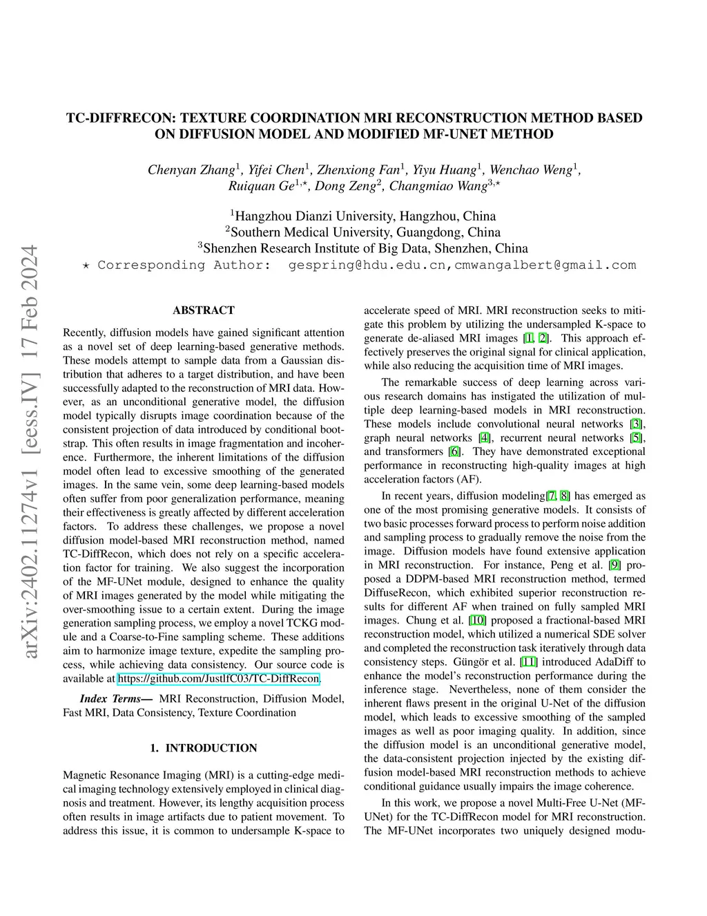 diffusion model and modified MF-UNet method