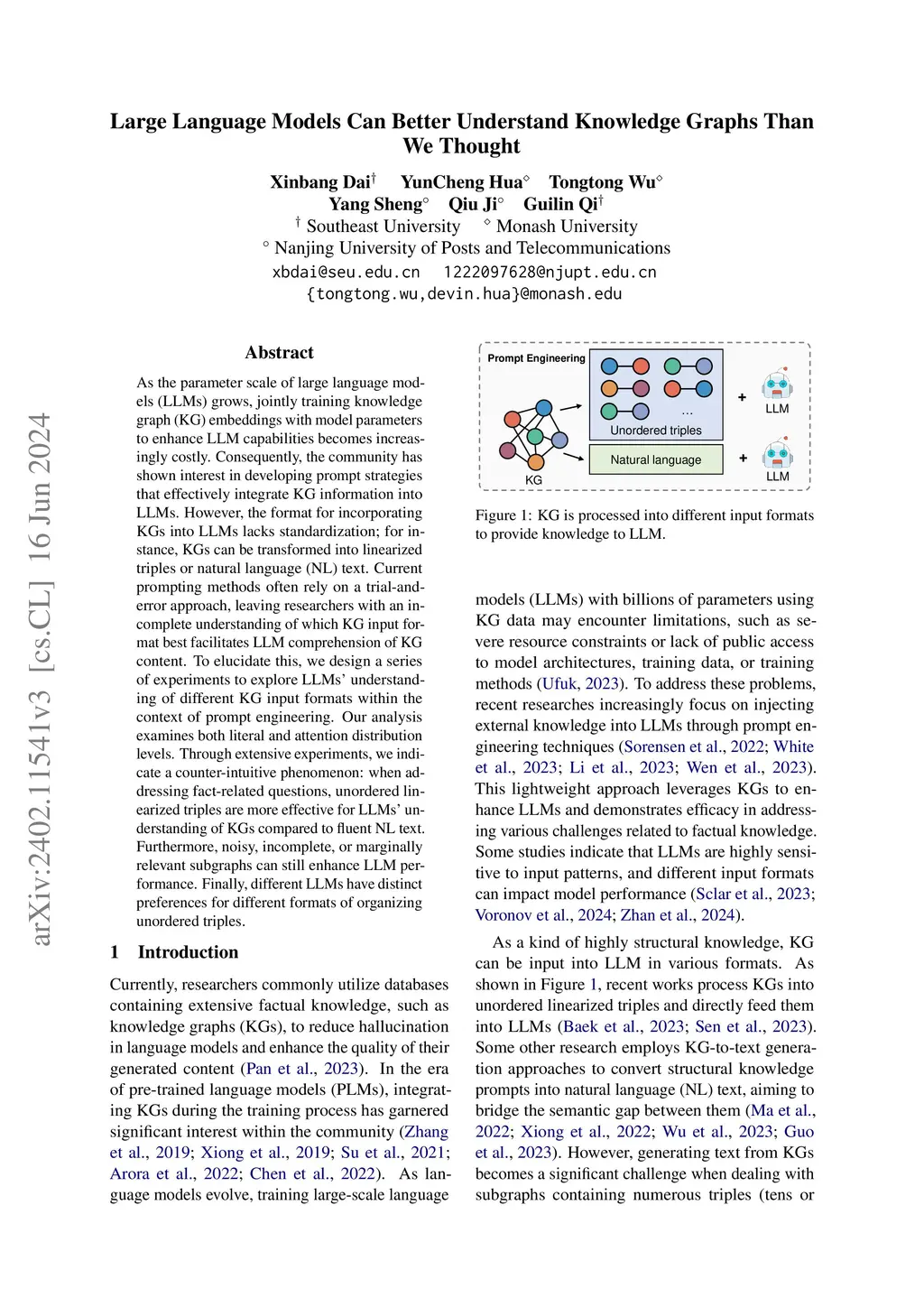 When we integrate factual knowledge from knowledge graphs (KGs) into large language models (LLMs) to enhance their performance, the cost of injection through training increases with the scale of the models. Consequently, there is significant interest in developing prompt strategies that effectively incorporate KG information into LLMs. However, the community has not yet comprehensively understood how LLMs process and interpret KG information in different input formats and organizations within prompts, and researchers often rely on trial and error. To address this gap, we design extensive experiments to empirically study LLMs' comprehension of different KG prompts. At the literal level, we reveal LLMs' preferences for various input formats (from linearized triples to fluent natural language text). At the attention distribution level, we discuss the underlying mechanisms driving these preferences. We then investigate how the organization of structured knowledge impacts LLMs and evaluate LLMs' robustness in processing and utilizing KG information in practical scenarios. Our experiments show that (1) linearized triples are more effective than fluent NL text in helping LLMs understand KG information and answer fact-intensive questions; (2) Different LLMs exhibit varying preferences for different organizational formats of triples; (3) LLMs with larger scales are more susceptible to noisy, incomplete subgraphs.