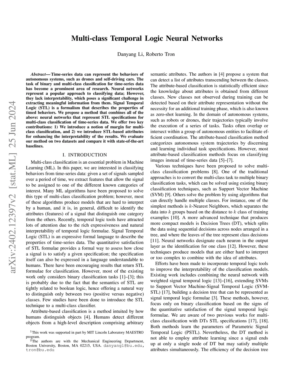 Multi-class Temporal Logic Neural Networks