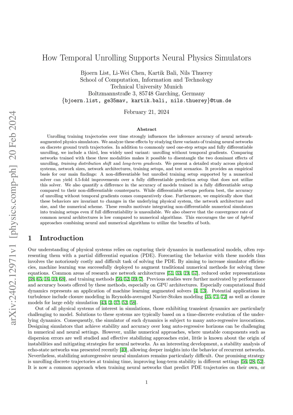 Unrolling training trajectories over time strongly influences the inference accuracy of neural network-augmented physics simulators. We analyze these effects by studying three variants of training neural networks on discrete ground truth trajectories. In addition to commonly used one-step setups and fully differentiable unrolling, we include a third, less widely used variant: unrolling without temporal gradients. Comparing networks trained with these three modalities makes it possible to disentangle the two dominant effects of unrolling, training distribution shift and long-term gradients. We present a detailed study across physical systems, network sizes, network architectures, training setups, and test scenarios. It provides an empirical basis for our main findings: A non-differentiable but unrolled training setup supported by a numerical solver can yield 4.5-fold improvements over a fully differentiable prediction setup that does not utilize this solver. We also quantify a difference in the accuracy of models trained in a fully differentiable setup compared to their non-differentiable counterparts. While differentiable setups perform best, the accuracy of unrolling without temporal gradients comes comparatively close. Furthermore, we empirically show that these behaviors are invariant to changes in the underlying physical system, the network architecture and size, and the numerical scheme. These results motivate integrating non-differentiable numerical simulators into training setups even if full differentiability is unavailable. We also observe that the convergence rate of common neural architectures is low compared to numerical algorithms. This encourages the use of hybrid approaches combining neural and numerical algorithms to utilize the benefits of both.