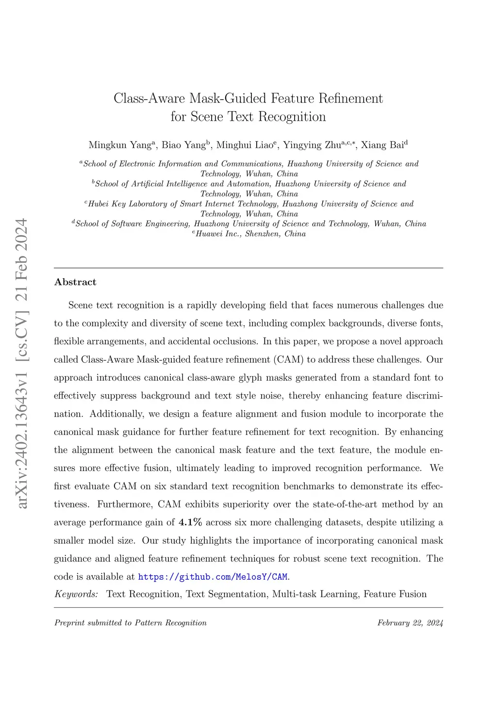 Class-Aware Mask-Guided Feature Refinement for Scene Text Recognition