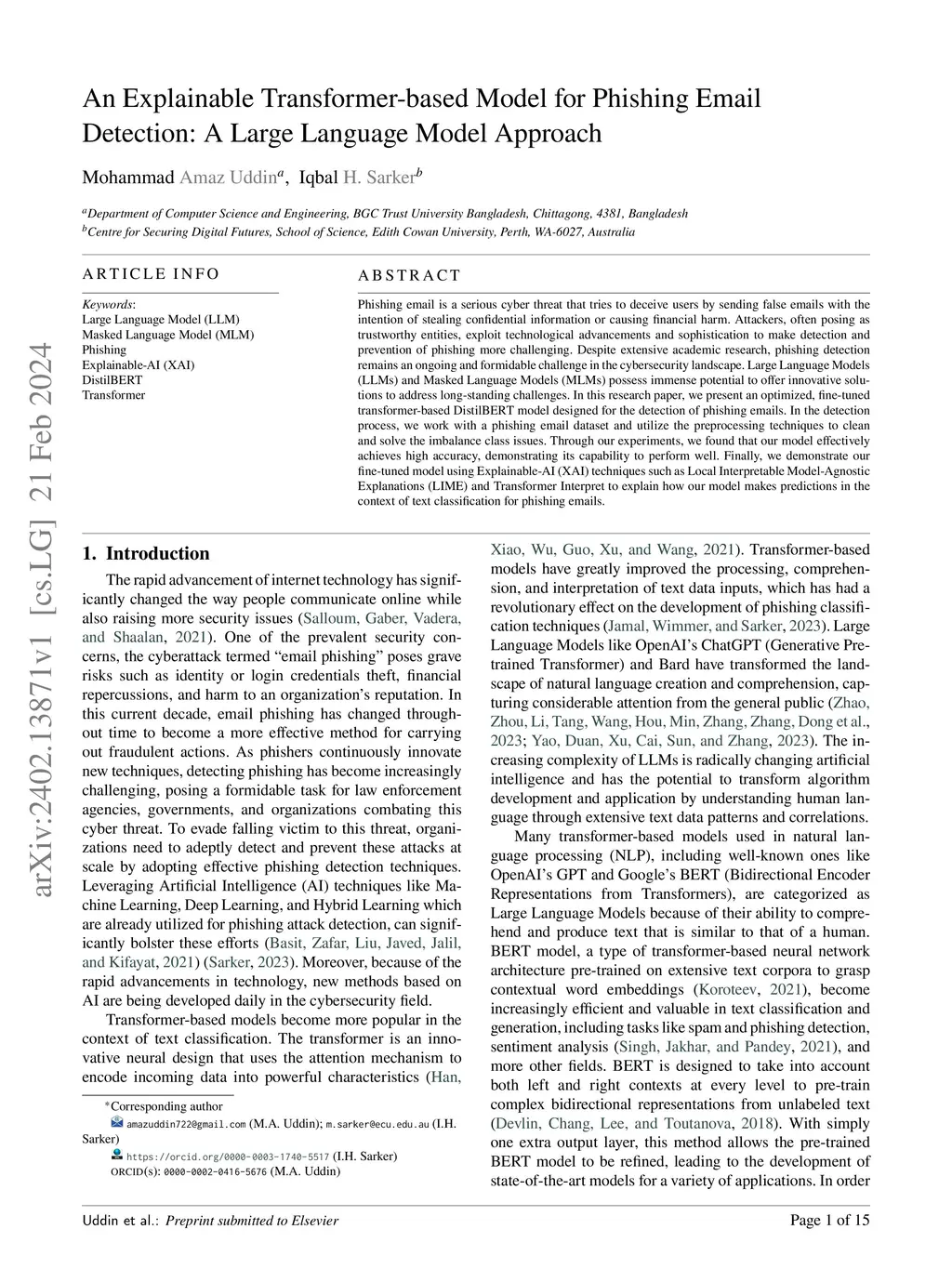 An Explainable Transformer-based Model for Phishing Email Detection: A Large Language Model Approach