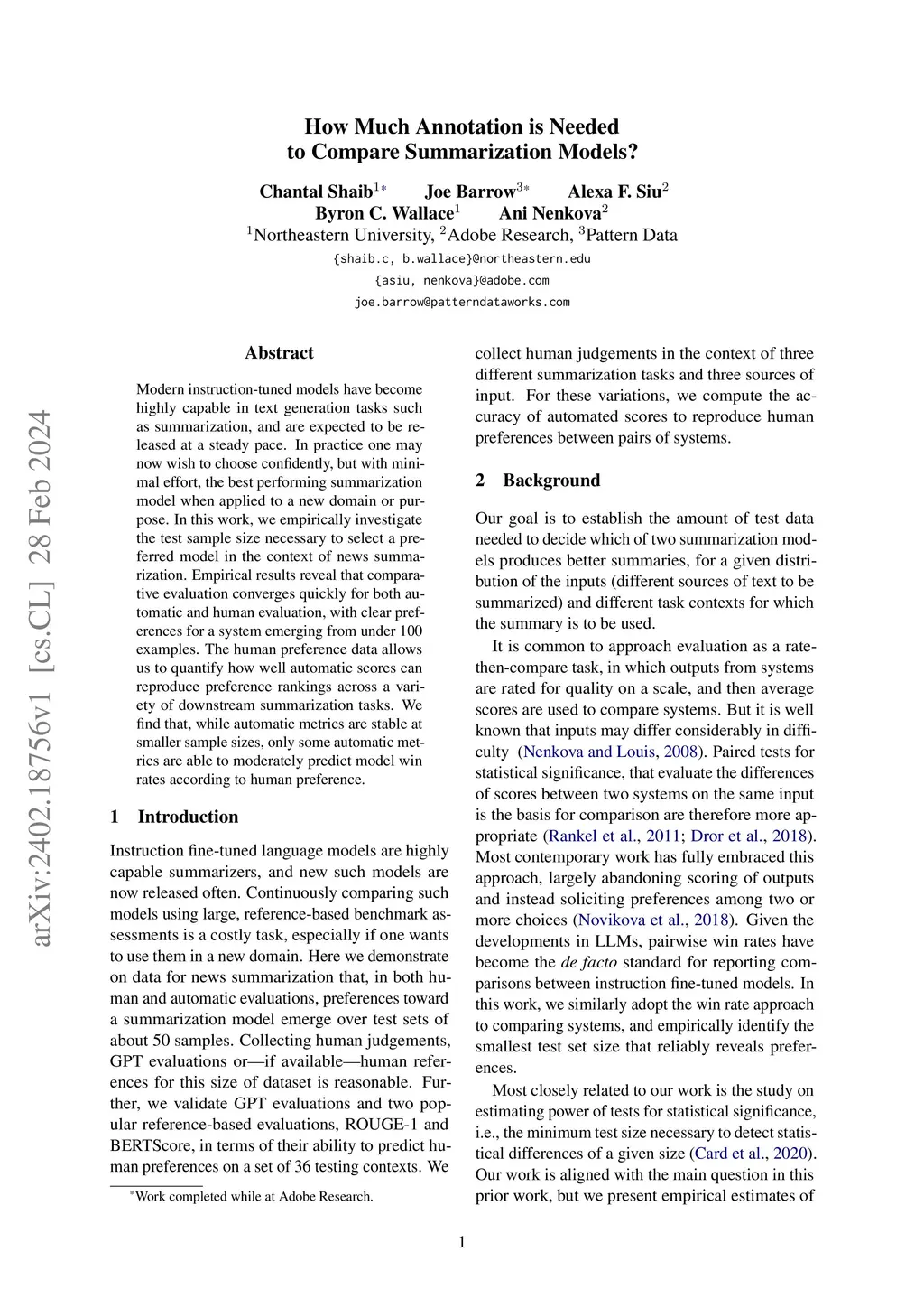Modern instruction-tuned models have become highly capable in text generation tasks such as summarization, and are expected to be released at a steady pace. In practice one may now wish to choose confidently, but with minimal effort, the best performing summarization model when applied to a new domain or purpose. In this work, we empirically investigate the test sample size necessary to select a preferred model in the context of news summarization. Empirical results reveal that comparative evaluation converges quickly for both automatic and human evaluation, with clear preferences for a system emerging from under 100 examples. The human preference data allows us to quantify how well automatic scores can reproduce preference rankings across a variety of downstream summarization tasks. We find that, while automatic metrics are stable at smaller sample sizes, only some automatic metrics are able to moderately predict model win rates according to human preference.