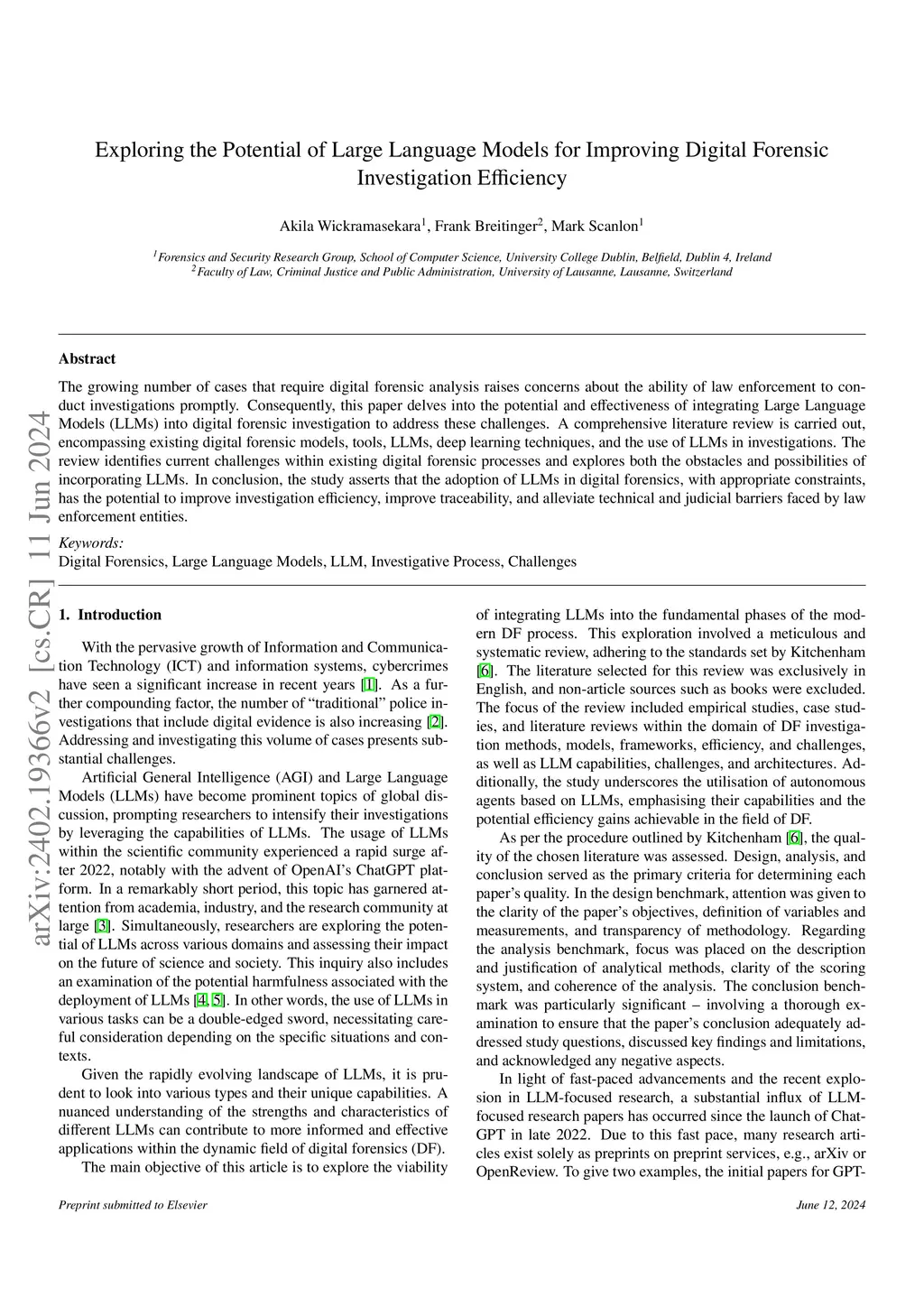 Exploring the Potential of Large Language Models for Improving Digital Forensic Investigation Efficiency
