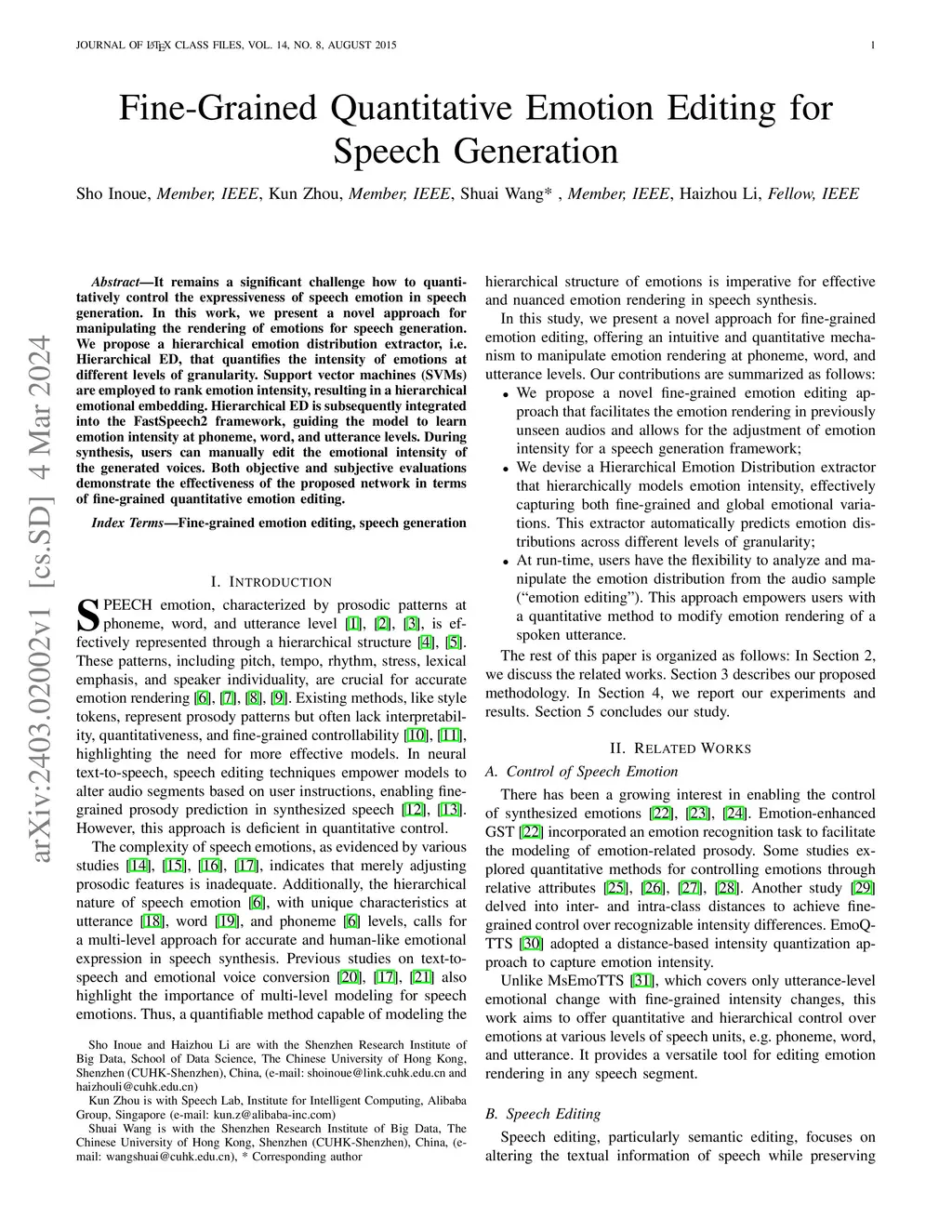It remains a significant challenge how to quantitatively control the expressiveness of speech emotion in speech generation. In this work, we present a novel approach for manipulating the rendering of emotions for speech generation. We propose a hierarchical emotion distribution extractor, i.e. Hierarchical ED, that quantifies the intensity of emotions at different levels of granularity. Support vector machines (SVMs) are employed to rank emotion intensity, resulting in a hierarchical emotional embedding. Hierarchical ED is subsequently integrated into the FastSpeech2 framework, guiding the model to learn emotion intensity at phoneme, word, and utterance levels. During synthesis, users can manually edit the emotional intensity of the generated voices. Both objective and subjective evaluations demonstrate the effectiveness of the proposed network in terms of fine-grained quantitative emotion editing.
