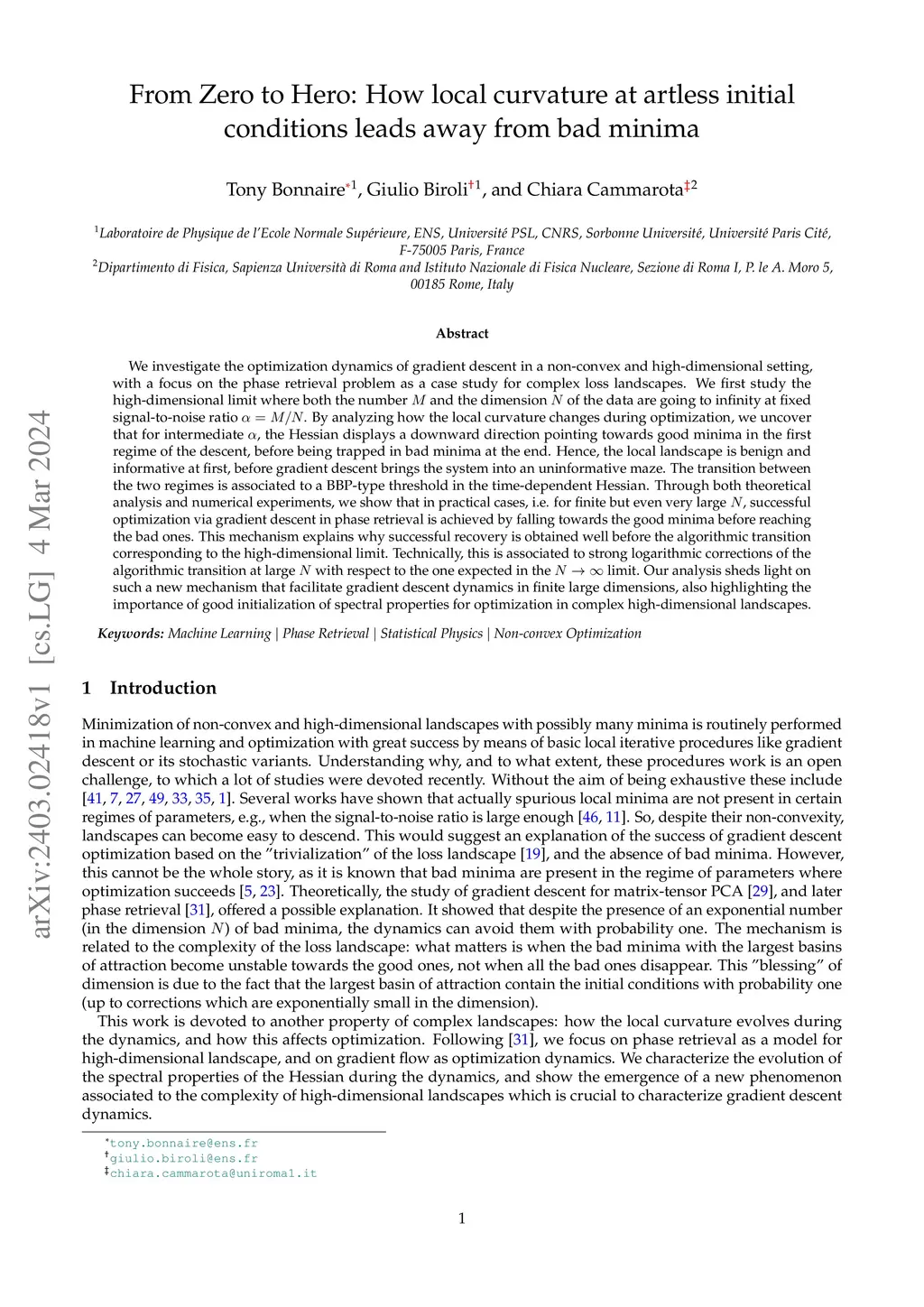 Gradient descent is commonly used to find minima in rough landscapes, particularly in recent machine learning applications. However, a theoretical understanding of why good solutions are found remains elusive, especially in strongly non-convex and high-dimensional settings. Here, we focus on the phase retrieval problem as a typical example, which has received a lot of attention recently in theoretical machine learning. We analyze the Hessian during gradient descent, identify a dynamical transition in its spectral properties, and relate it to the ability of escaping rough regions in the loss landscape. When the signal-to-noise ratio (SNR) is large enough, an informative negative direction exists in the Hessian at the beginning of the descent, i.e in the initial condition. While descending, a BBP transition in the spectrum takes place in finite time: the direction is lost, and the dynamics is trapped in a rugged region filled with marginally stable bad minima. Surprisingly, for finite system sizes, this window of negative curvature allows the system to recover the signal well before the theoretical SNR found for infinite sizes, emphasizing the central role of initialization and early-time dynamics for efficiently navigating rough landscapes.
