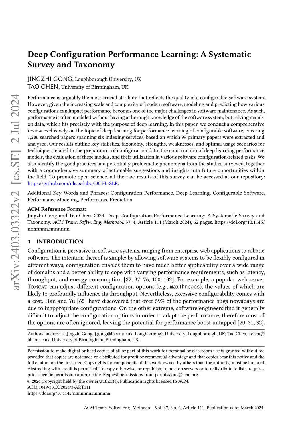 Deep Configuration Performance Learning: A Systematic Survey and