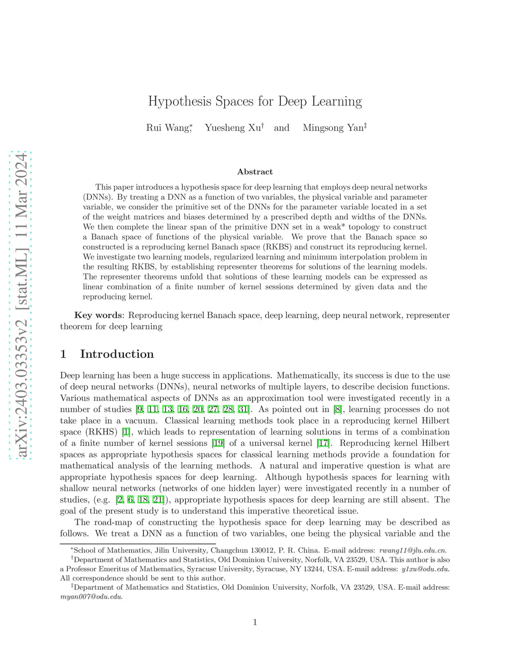 Hypothesis Spaces for Deep Learning